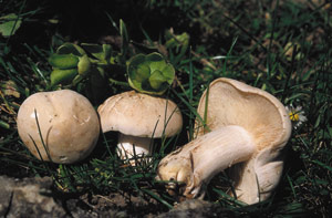 Seta San Jorge - Esta especie presenta un sombrero carnoso de 4 a15 cm de diámetro de color blanco o crema y superficie lisa y mate. El margen está muy enrollado cuando es joven; más tarde se abre. Las láminas son apretadas, estrechas y escotadas, blancas. Pie robusto y del color de las láminas.